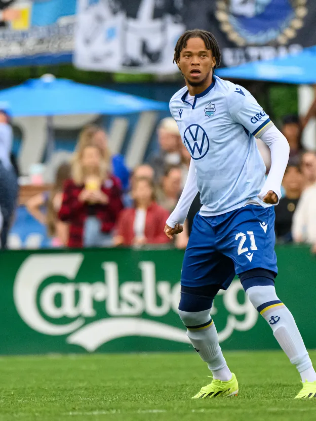 Jefferson Alphonse est en concurrence en défense centrale avec Dan Nimick, Julian Dunn et Cale Loughrey. Sa polyvalence peut néanmoins lui offrir des minutes à la position de latéral. Il se sent à l’aise dans les différents postes défensifs, ce qui peut l’aider à convaincre son coach de faire appel à lui. Il sait qu’il a des choses à prouver. « Un contrat, c’est toujours bien, mais on ne peut pas encore dire que le moteur a démarré. il faut que je joue, que je fasse de bonnes prestations et là on pourra dire ça. Je n’ai que quelques minutes de jeu. En si peu de temps, tu ne prouves rien à qui que ce soit », rappelle-t-il. Il ne lui a pas fallu longtemps cependant pour saisir l’opportunité. À son deuxième match, contre York United, il obtient 9 minutes, mais il est à l’origine de la réduction du score de son équipe. Il remporte son duel de la tête au milieu du terrain face à Brian Wright, le meilleur buteur de la ligue. Cette relance permet à Ryan Telfer de combiner, avant d’être lancé dans la profondeur et de marquer. De bonnes prédispositions qui peuvent désormais pleinement s’exprimer, après être restée longtemps à l’entrée du monde professionnel. Formé à Montréal, il n’a pas eu l’opportunité de signer en MLS. Il est ensuite passé proche de signer en CPL à plusieurs reprises, mais le timing n’a jamais été idéal. Il rejoint alors les rangs de Saint-Laurent en Ligue1QC, tout en commençant à évaluer ses possibilités hors football. « J’ai passé 5 ans au CF Montréal et je me suis retrouvé finalement à Saint-Laurent. C’est sûr que ce n’est pas forcément facile en sortant de l’académie et tu demandes quelle va être la suite. Les essais, c’est un peu pareil. Pour moi, j’ai toujours été bon pendant mes essais, je sentais que je méritais mon contrat, mais pour diverses raisons, ça ne s’est pas fait. J’ai toujours eu confiance dans mes habiletés et j’espérais avoir ma chance. En voyant mon âge avancer, je me disais qu’il fallait commencer à réfléchir à faire autre chose que du foot. Il fallait être réaliste. Si à 22 ans ça ne passait pas, je comptais vraiment me concentrer sur l’école. » Telle est la réalité de bon nombre de joueurs formés mais finalement non conservés. Du jour au lendemain, ces jeunes se retrouvent sans contrat, sans structure et sans forcément un grand réseau de contacts. « Quand cette aventure se termine, tu te poses forcément des questions, explique Jefferson Alphonse. Tu n’es pas habitué à avoir un rythme comme les autres joueurs de ton âge à aller à l’école toute la journée, etc. Quand tu arrives en fin de formation et que tu ne signes pas, tu te poses beaucoup de questions sur ton avenir. Psychologiquement, c’est dur. Dans ces moments-là, il est important d’avoir un bon entourage pour te pousser à continuer. Plusieurs gars que je connais ont lâché, sont retournés à l’école ou travailler. C’est dommage parce qu’il y a beaucoup de talents. » Aujourd’hui, cette période est derrière lui. Bien sûr, il y a « un soulagement », mais, prévient-il « ça s’arrête là. » « Maintenant, il faut gagner du temps de jeu pour montrer que je peux jouer au plus haut niveau. » Ça (re)commence dès le prochain match des Wanderers, contre Valour, ce 18 juillet.