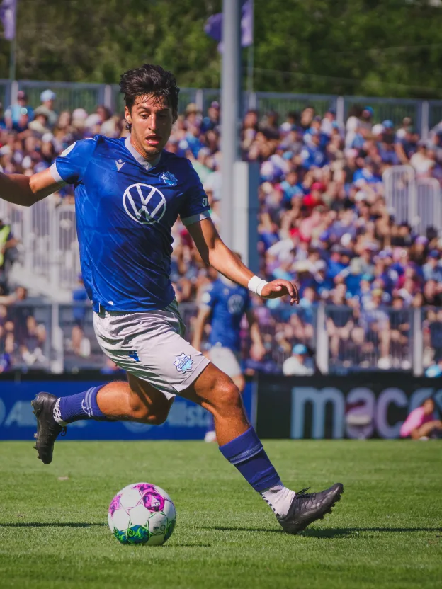 Tomas Giraldo a participé à 17 matchs cette saison, totalisant 765 minutes de jeu. Un temps de jeu conséquent pour celui qui est devenu pro en juin 2020 avec l’Impact de Montréal (devenu le CF Montréal), mais dont la trajectoire a été stoppée par les blessures. « Ces deux années (2021 et 2022), j’ai passé plus de temps dans un gym que sur un terrain de foot », illustre Tomas Giraldo. « Le fait d’enchaîner des matchs, de m’entraîner tous les jours, de ne pas seulement être un nom sur un roster, mais de faire partie de l’équipe et apporter sur le terrain, oui, c’est une renaissance. Tout ce que j’ai pu faire cette année, c’est acquis, c’est gagné », se réjouit-il. Ce temps de jeu, cette volonté de pleinement faire partie d’un groupe, c’est ce qu’il était venu chercher en signant aux Wanderers de Halifax pour un an, avec deux années en option. En Nouvelle-Écosse, il a découvert une nouvelle équipe, mais aussi un environnement propice pour enfin lancer sa carrière. « On a un bon groupe, tout le monde s’entend bien et ça aide beaucoup à avoir du plaisir, explique le natif de Medellín, en Colombie. On est jeunes, on est tous sur la même longueur d’onde », poursuit-il. Malgré une équipe très fortement renouvelée en 2023 et un nouveau staff, l’objectif d’Halifax de se qualifier pour les séries est à portée de main. Les Wanderers sont 4e au classement. Une victoire contre le Forge FC lors de la prochaine journée et le contrat sera rempli. En cas de défaite, il resterait un match contre Valour pour tenter de valider le ticket. De quoi ravir le joueur de 20 ans, qui ne compte pas en rester là. « On veut se qualifier, mais on ne s’en contentera pas. On a l’ambition d’aller le plus loin possible. C’était l’objectif cette saison, et c’est en train de se réaliser. C’est désormais à nous de prendre les choses en main pour cette fin de saison », dit-il. « Plutôt que de penser à eux, on va mettre le focus sur nous, bien se préparer et faire en sorte que le plan de match se passe bien. On compte aussi sur nos fans. On a fait de bonnes performances à domicile », rappelle-t-il. Cette saison positive d’un point de vue collectif l’est également à titre personnel. Tomas Giraldo a eu l’occasion d’élargir sa palette. « À Montréal, se remémore-t-il, je jouais plus milieu défensif ou relayeur, mais ici, le coach me fait confiance un peu plus haut. Je peux même me retrouver deuxième attaquant. Cette polyvalence m’aide, comme ça aide le coach. » Il reconnaît avoir dû s’adapter. « Gérer les courses en profondeur, comprendre à quel moment les faire, quand décrocher, quand rester en position… c’est quelque-chose que j’ai appris à faire ici et que je ne faisais pas nécessairement à Montréal ou à l’académie », explique-t-il.