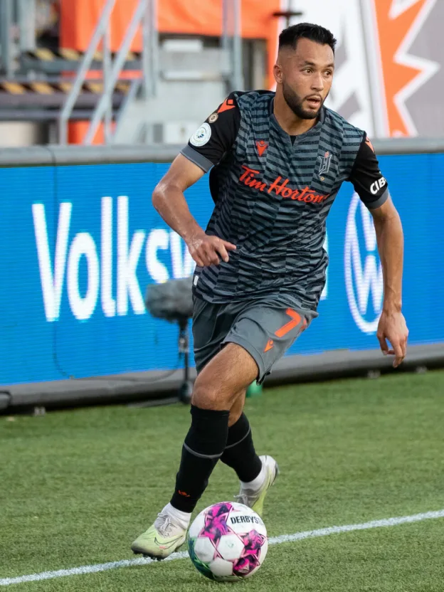 Pour bien comprendre ce que représente David Choinière en CPL, il suffit de se plonger dans les statistiques les plus basiques. À 26 ans, l’ailier québécois a disputé 122 matchs sous les couleurs du Forge FC, pour un total de 21 buts et 15 passes décisives. Présent à Forge depuis mars 2019, il a remporté 4 championnats. Il a marqué lors de la finale 2022, en enrhumant le défenseur d’Ottawa d’un double contact renversant. Il avait déjà marqué lors de la demi-finale. Il s’est également illustré lors de la saison inaugurale de la CPL (2019), en inscrivant le seul but du match en finale retour, face au Cavalry. Un homme des grands rendez-vous, donc. Quand la scène nationale ne lui suffit plus, c’est sur la scène internationale qu’il s’illustre. Au fil de sa carrière, il a joué 17 matchs de Concacaf (15 en Concacaf League et 2 en Ligue des Champions) pour 5 buts et 1 passe décisive. Dans ce total, il s’est offert en plus une petite dose de prestige, en inscrivant un but d’une frappe magnifique des 20 mètres à l’Azteca de Mexico contre Cruz Azul. « Je suis conscient que je fais partie des très bons ailiers de cette ligue, mais je n’y pense pas vraiment. Mon objectif est de me concentrer sur le quotidien, de travailler, d’être performant en match. Je ne me compare pas aux autres. Je me dis simplement qu’en faisant mon travail, je peux faire partie des meilleurs de la ligue », assure-t-il. Humble dans son approche, David Choinière demeure un joueur ambitieux. Auteur de 2 buts et 3 passes décisives en 15 rencontres de championnat cette année et un total de 969 minutes de jeu en CPL, il est dans ses temps de passage habituels. L’an passé, il a marqué 4 buts et adressé 4 passes en 26 matchs de saison régulière de CPL. En 2021, c’était 4 buts et 1 passe en 22 rencontres. Pourtant, à ses yeux, ce n’est pas tout à fait satisfaisant. Il veut faire mieux. Sans doute le secret de sa réussite et de sa longévité. « J’avais de grosses attentes cette saison et, honnêtement, je m’attendais à beaucoup mieux au niveau des statistiques. Dans ma tête, j’avais passé un cap lors de la saison morte, surtout avec ma fin de saison l’an dernier. Ceci dit, je suis serein », dit-il.