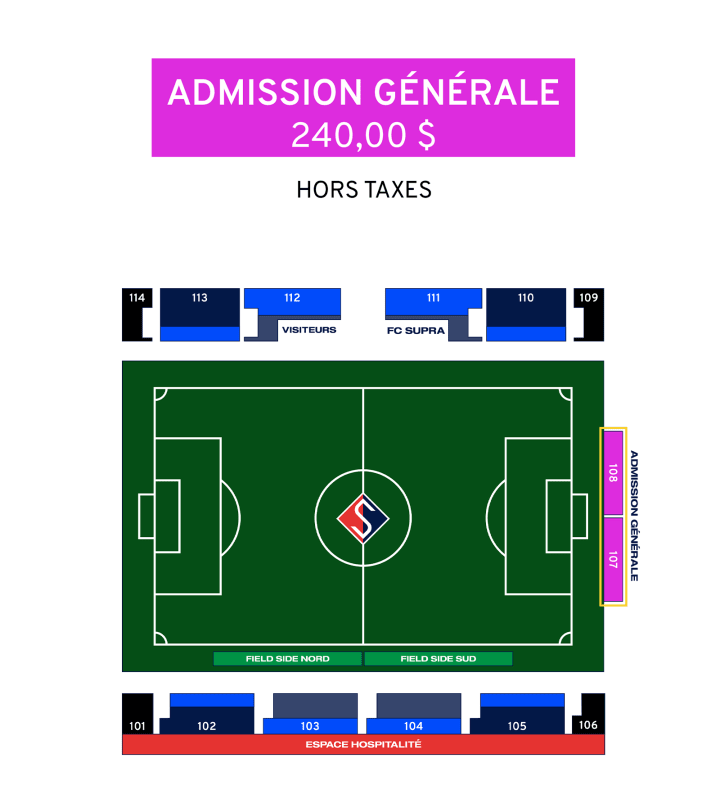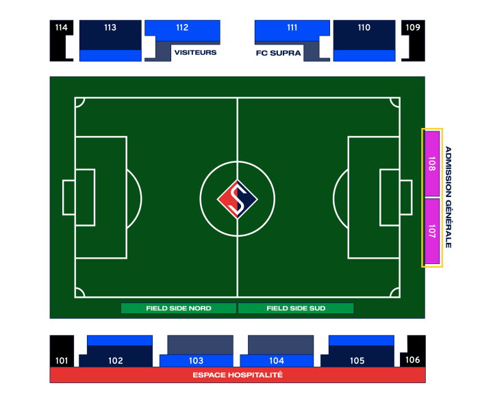 *Ces emplacements sont en placement libre et réservés aux supporters souhaitant contribuer à l’ambiance en jour de match, qui risquent donc de faire du bruit et de rester debout !